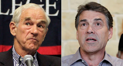 I've told Republicans that if all they want is to win, they should just nominate Hillary Clinton. The next best thing might be Rick Perry. Rick Perry wants open borders. Rick Perry has been pushing that big highway from Mexico through Texas. Rick Perry is a globalist. But he's positioning himself as though he were... Ron Paul. One pundit calls him a polyester Ron Paul. He's saying enough far-out Ronpaulian things about monetary policy and things in general to attract the credulous. Indeed, if Perry had no history, much of what he says suggests that he'd be a good President. Much of what he says. But he lacks Ron Paul's sterling record, which is at odds with his Dennis-Quaid-Doing-John-Wayne image. I'll stick with Ron Paul's basic Jimmy Stewart simplicity. I'll be voting for Ron Paul in the primary, but my prediction for this hour is that Perry will be nominated, probably do something 'courageous' like picking Marco Rubio for VP, and go on to beat Obama. And I'll probably (sigh!) vote for him, just like I voted for the egregious McCain in 2008, just to end the Obama catastrophe, or at least maybe slow it down.