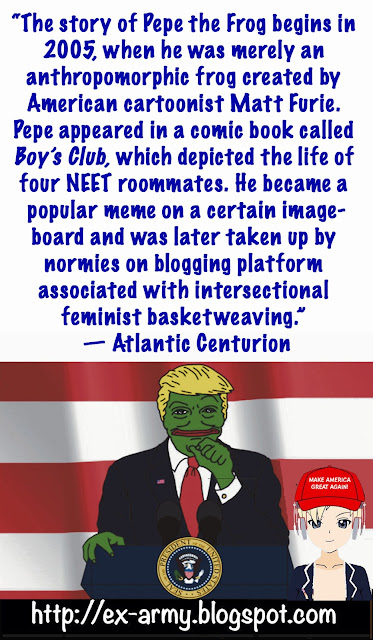 But right now it would seem that, as they say, Trump "owns" Pepe, so we'd better keep track of Pepe, whether I'm seventy years old or not.